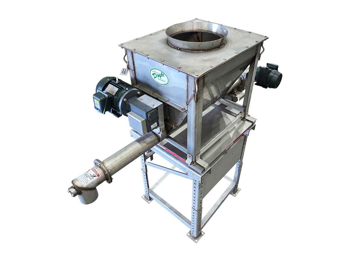 The Doyle Powder Feeder is designed for accurate and consistent dosing of fine powdered ingredients into dry fertilizer blending systems. The unit features an internal agitator that prevents bridging and promotes continuous material flow into the screw auger. The auger meters and discharges powder at controlled rates to meet precise blend requirements.